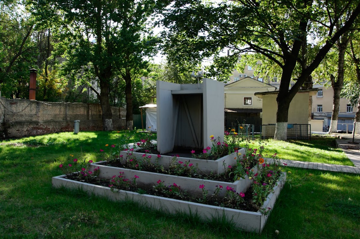 В центре двора находится небольшой двухэтажный домик 1940-го года постройки и бывшее хранилище ГСМ (горюче-смазочных материалов), состоящее из нескольких цистерн, закопанных в землю, с выводными люками на поверхности.