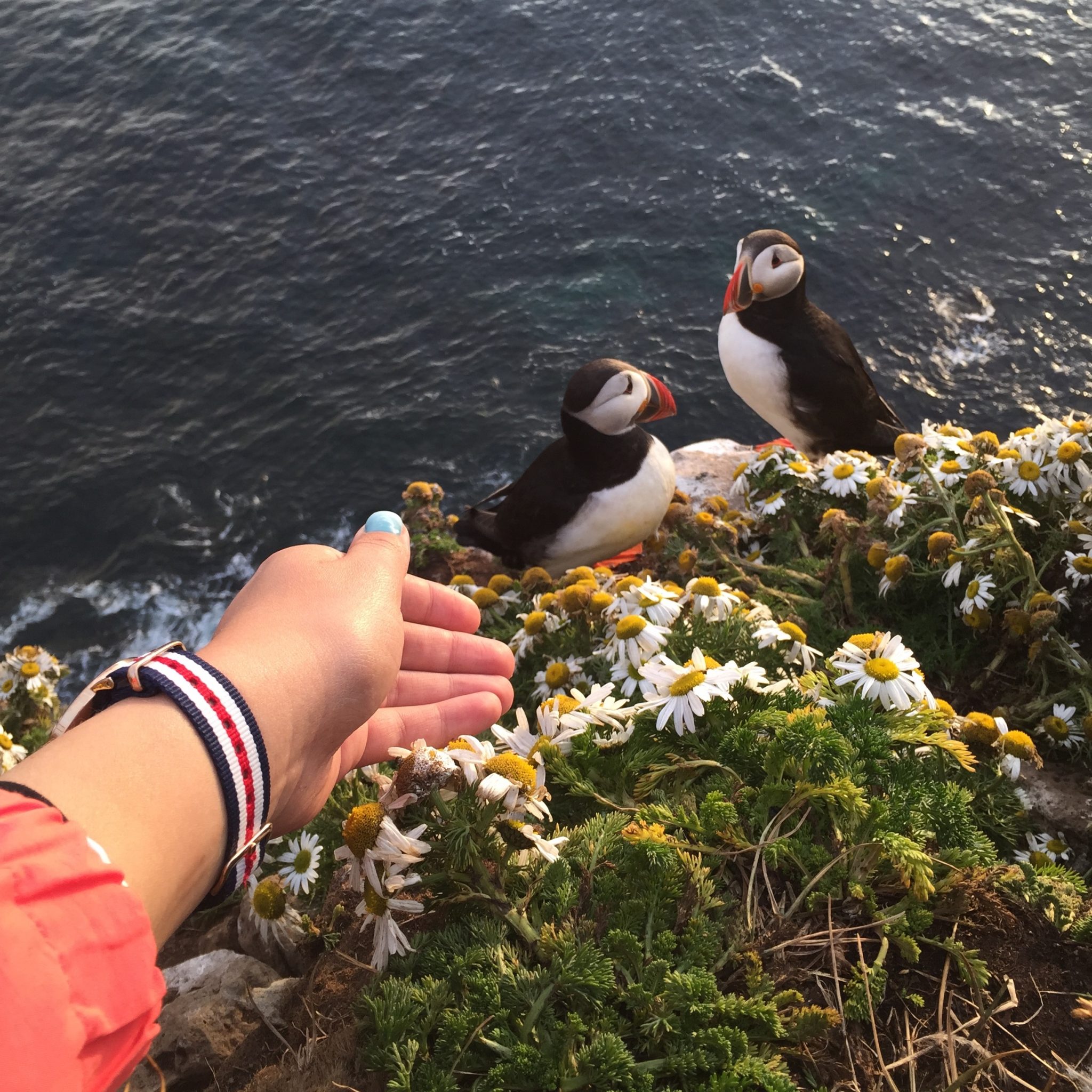 Двигаясь к югу, обязательной точкой в нашем маршруте была скала Латрабьярг – самая Западная точка Европы и место обитания самой большой колонии тупиков, пожалуй, самых милых птиц, которых я когда-либо видела. Будто игрушечные, небольшие птички скачут на расстоянии вытянутой руки от тебя, забавно двигая своим клювом и крылышками. Но эти милашки улетают в конце августа, поэтому нам очень повезло встретить их там, проделав длинный путь и чуть было не развернувшись в 1 км от пункта назначения.