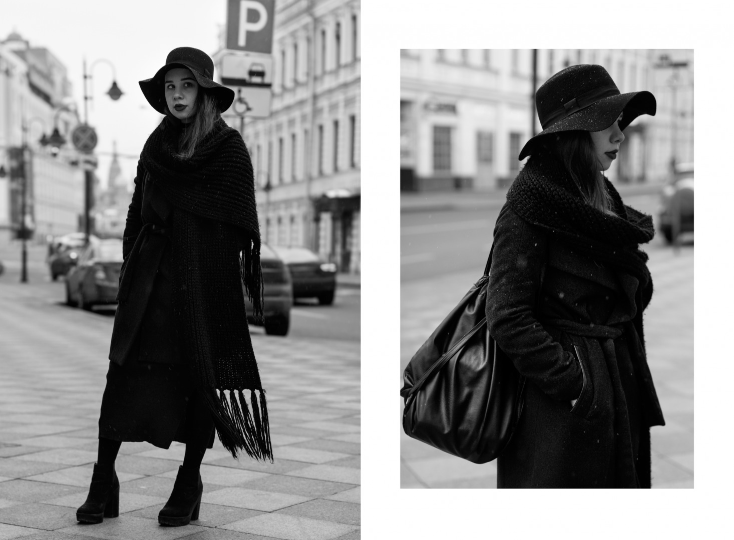 Мне не идет темная одежда, черные стрелки на глазах и даже черного цвета тушь. И сам total black с моим характером абсолютно не сочетается. Но найти что-то более элегантное чем черное платье, черное пальто, и, в особенности, сумку и обувь, сложно. Это те предметы гардероба, которые сделают любой мой образ целостным и гармоничным, простым и запоминающимся.