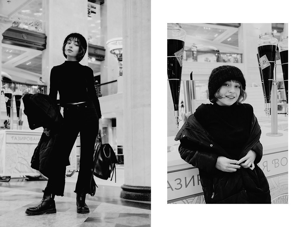 Даже несмотря на все эти шутки, сыплющиеся от знакомых и незнакомых людей, а-ля: «А где проходит встреча готов?»,»Кто-то умер?», «Тебе после пар на похороны?». Подруги уже смирились и почти не спрашивают, в чем я пойду, потому что ответ на 100% предсказуемый. Когда я выбираю вещи онлайн, то фильтр по цвету ставится еще до того, как я пойму, что именно я хочу купить. Если я иду в магазин, то «Есть ли эта вещь в черном?» — один из самых часто задаваемых вопросов. Так сложилось не потому, что я с озверением слежу за модой и деятельностью фэшн-блоггеров, обычно вся их деятельность, как и выходы новых коллекций, проходят мимо меня. Все дело в обстоятельствах моего переезда в Москву: в тот период мой собственный стиль претерпел разительные перемены. Не осталось места ярким цветам да девчачьим нарядам в формате «кофточка-джинсики-балеточки». Я стала приобретать вещи, которые легко было сочетать между собой. И собственные образы сегодня — лишь плод моего воображения.