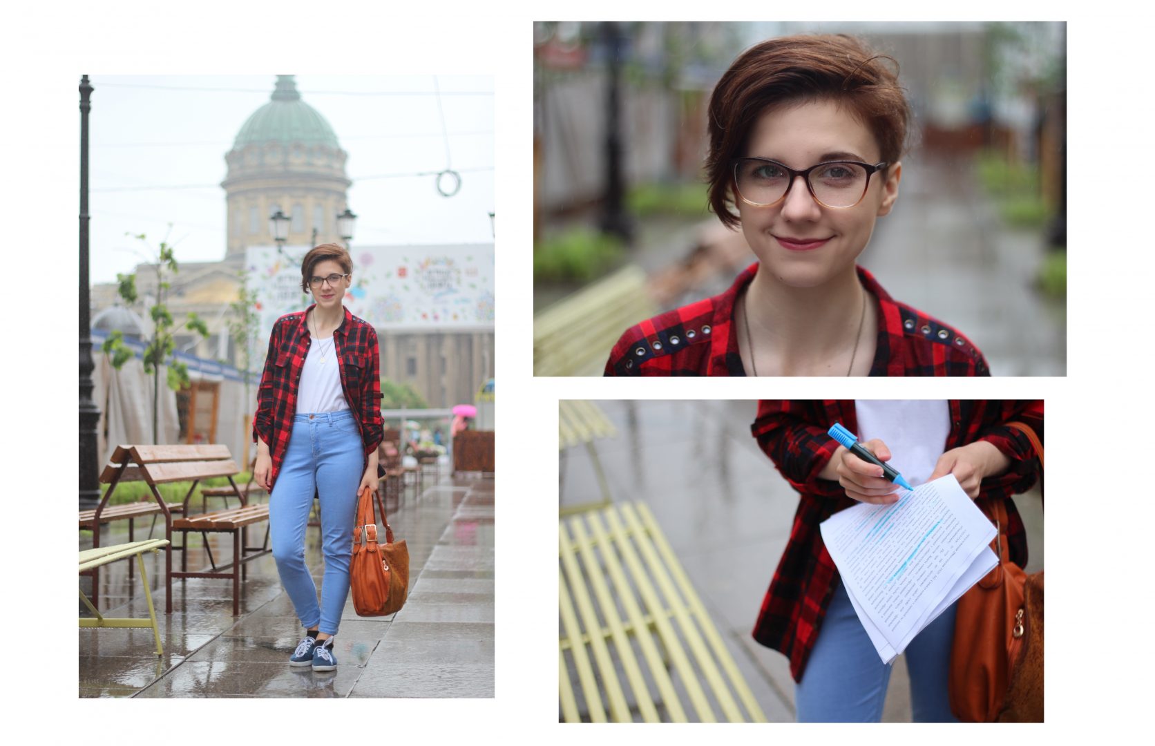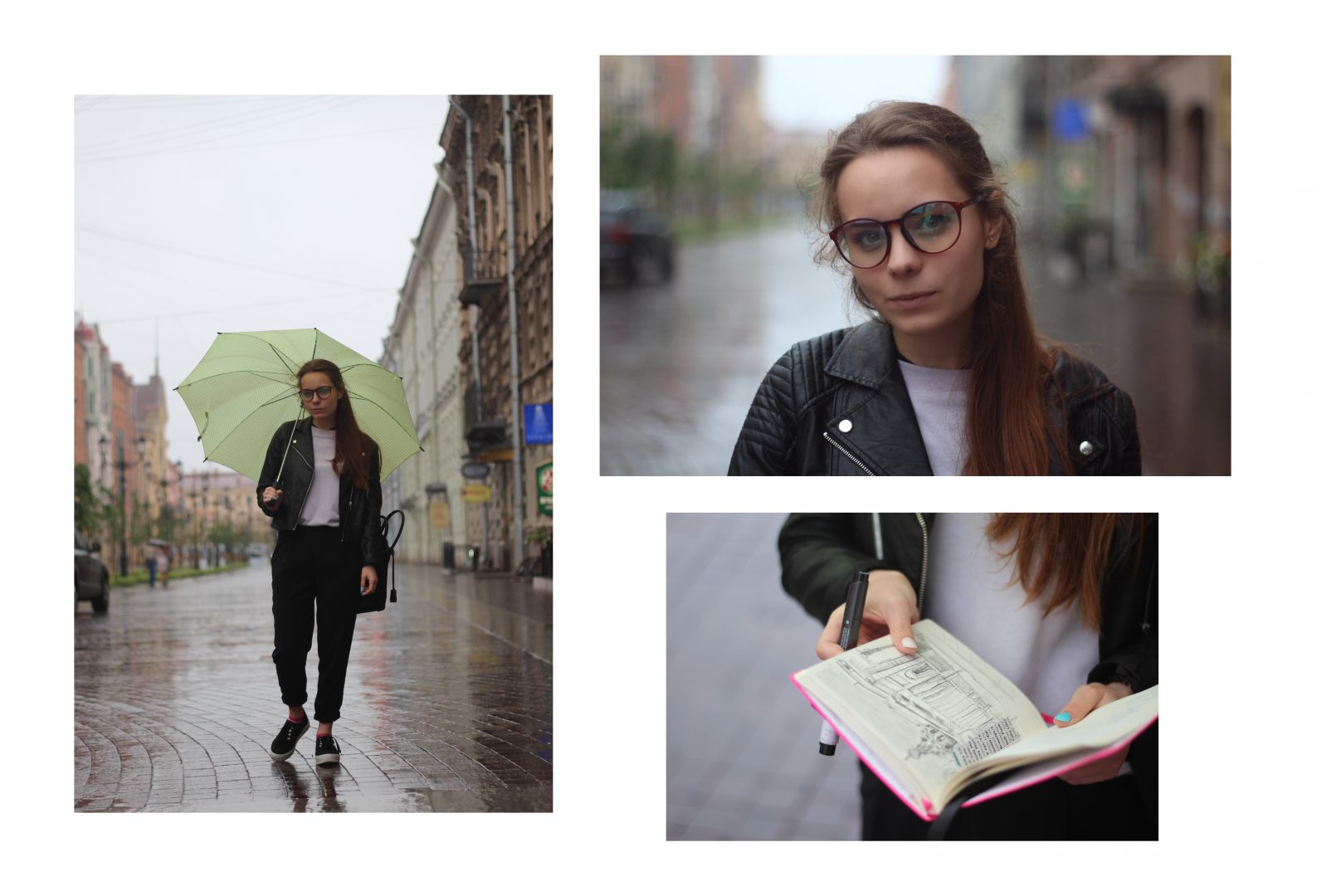 В Санкт-Петербурге я живу двадцать лет. Незаменимая часть гардероба — дождевик розового цвета. Как ни банально, абитуриенту лучше запастись зонтом и парой нарядных вещей, чтобы сделать фотографии на фоне достопримечательностей.