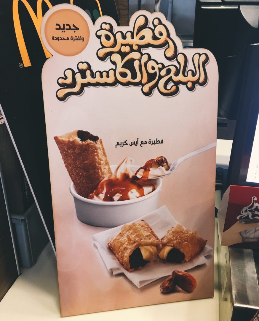 Макдоналдс как символ глобализации — феномен, заслуживающий минимум монографии. О целом ряде его особенностей в арабских странах (не только очевидных, вроде соответствующего канонам ислама меню, но и специфики восприятия ресторана населением) поговорить было бы очень интересно, но сейчас речь не об этом.