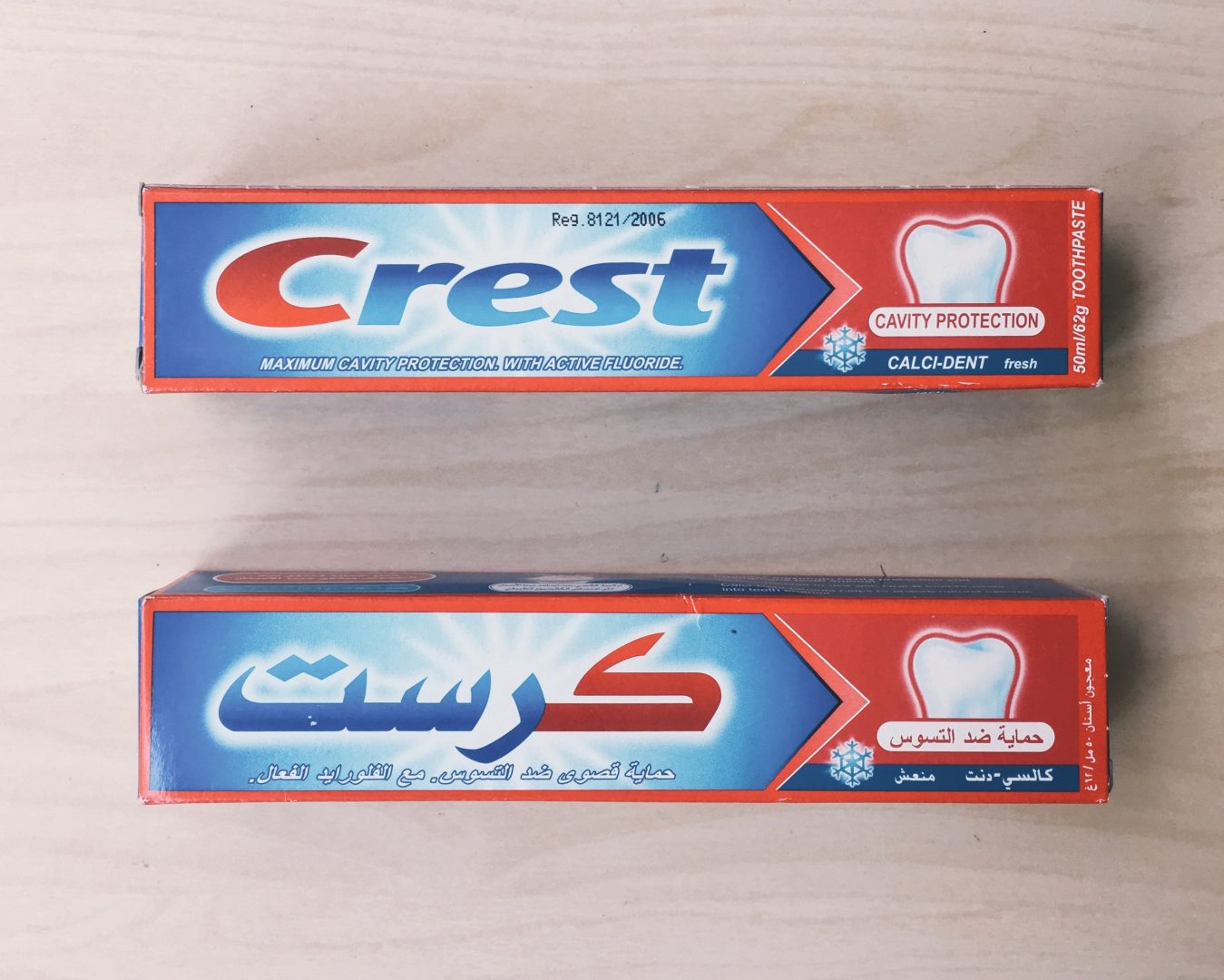 Crest — американский бренд, принадлежащий компании Procter&Gamble и реализуемый во многих странах мира, в том числе и Египте. Славится паста отбеливающим эффектом, заметным с первого применения. Фармацевтические товары в Египте с колониальных времён остались британскими — наткнуться на некачественную подделку не получится.