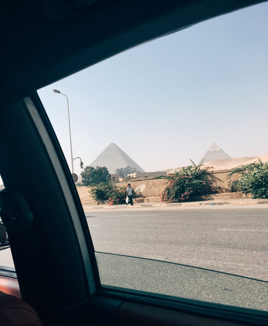 Путь от центра Каира до границы с Ливийской пустыней занимает 20 минут. Как ни странно, вид на пирамиды из окна такси, несущегося по улице XXI века, во многом производит более мощное визуальное впечатление, нежели панорамный вид со смотровой площадки непосредственно в пустыне.