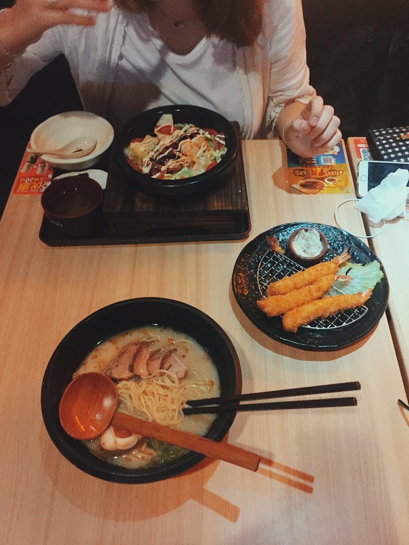 Если вам захочется безумно вкусного японского удона, то стоит пойти сюда, их очень много и находятся они почти у каждой станции метро. Моя любовь навечно — удон с уткой, он совсем не острый, но любителям острых ощущений тоже есть что отведать. Рис здесь тоже ничего, а вот закуски какие-то посредственные. Цена огромной плошки удона — 33-50 юаней.