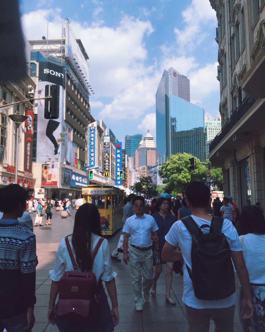 1. Дойти по пешеходной улице Нанцзин лу (南京路步行街) и до набережной Вайтань (外滩)