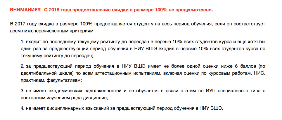 Летняя сессия 2017 года стала последней возможностью перевестись на 100% скидку, после чего ее официально упразднили.