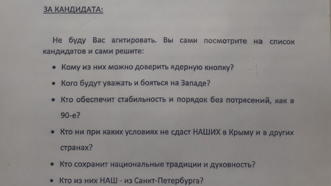 Совсем скоро выборы президента РФ, и отовсюду звучат призывы к участию в голосовании. Листовки, реклама, баннеры — уже привычные спутники агитации, но иногда это кажется недостаточным. В общежитии №12 СПБ ГБПОУ «Автотранспортный и электромеханический колледж», где проживают студенты разных петербургских вузов, в том числе студенты ВШЭ, администрация перешла к более решительным мерам в попытках привить жильцам интерес к выборам. Питерская редакция постаралась прояснить ситуацию и понять, где заканчивается предвыборная агитация и начинаются неправомерные действия.