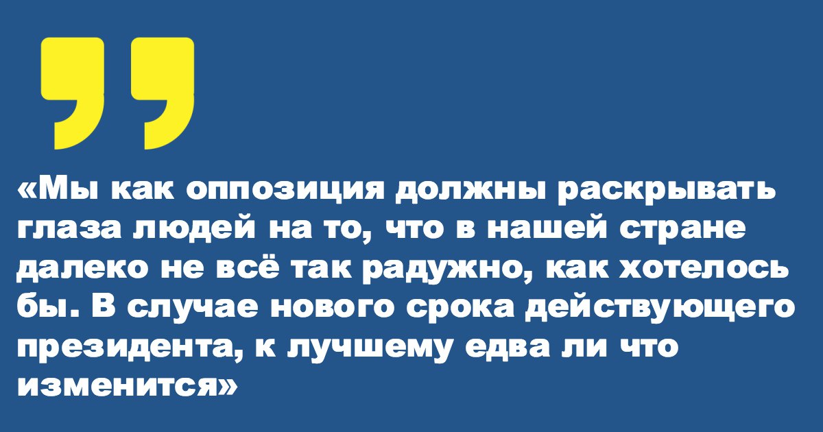 Мы, как оппозиция, должны раскрывать глаза людей на то, что в нашей стране далеко не всё так радужно, как хотелось бы. В случае нового срока действующего президента к лучшему едва ли что изменится. Кроме того, наша задача – мобилизовать наш электорат, ведь реально много людей, судя по моим личным наблюдениям, имеют хорошее отношение к Жириновскому как к человеку и как к политику. Наша цель – дать им смысл потратить полчаса своей жизни ради похода на избирательный участок.