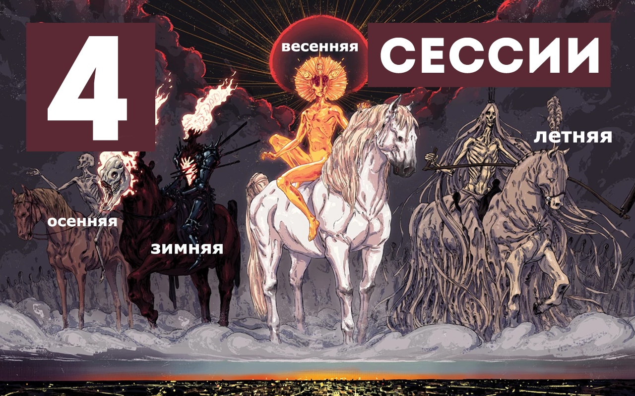 Мы учимся по модулям, каждый модуль — это как четверть в школе. И новые дисциплины необязательно начинаются в сентябре или в январе. Они могут начаться в любом модуле и длиться один, два модуля или дольше. Но вот только сессия ждет студентов после каждого из них, всего — 4 сессии в год. В два раза больше, чем обычно. Мы уже рассказывали о страданиях на сессии в гифках.