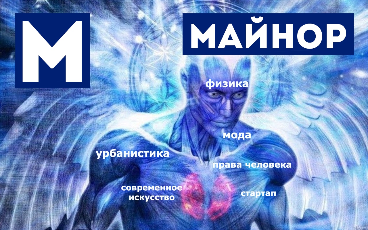 Майнор — это дополнительный профиль образования. Можно выбрать практически любую специализацию: от физики до современного искусства и урбанистики в независимости от основной специальности. Выбирают майнор в конце первого курса, а проходят его на втором и третьем курсах.