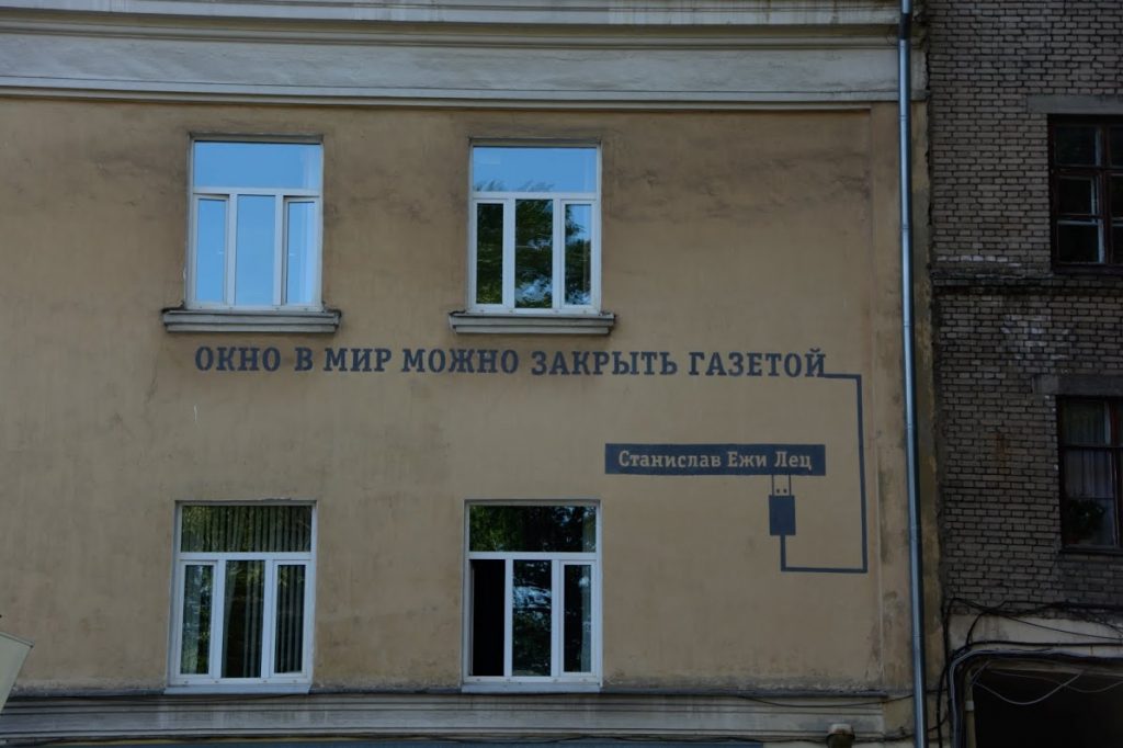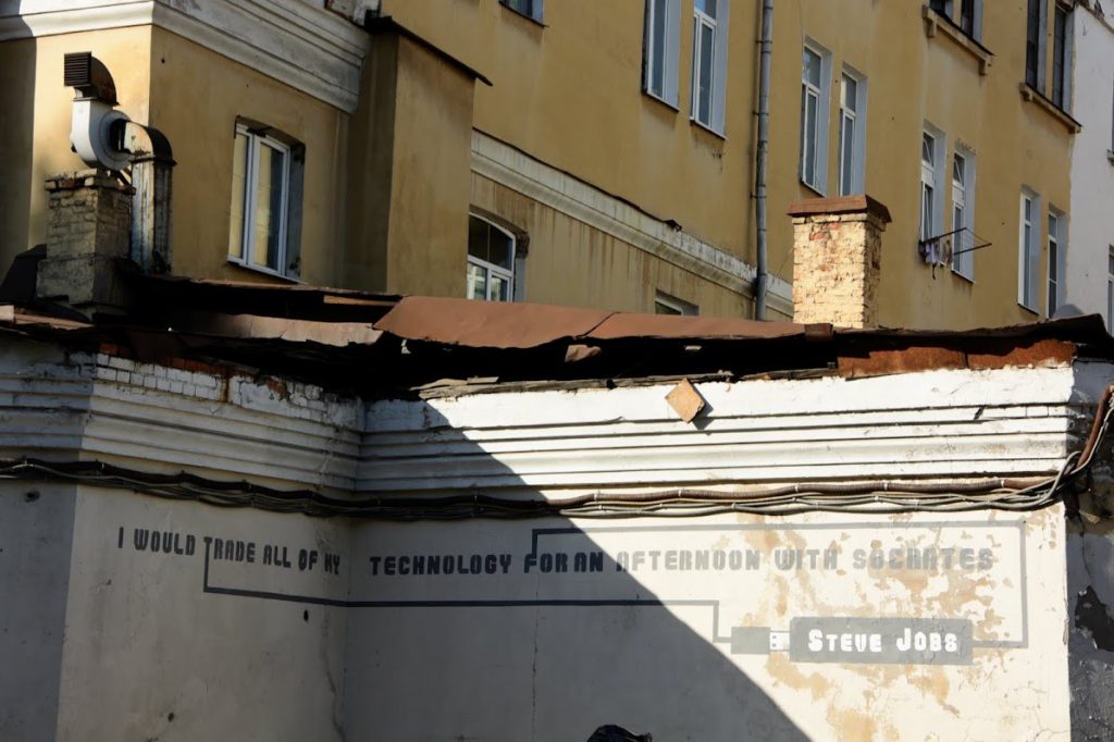 Также здания вокруг расписаны цитатами, связанными с коммуникациями. По цитате Стива Джобса «I would trade all of my technology for an afternoon with Socrates» студенты факультета медиакоммуникаций даже писали эссе на занятиях по Античной литературе, выясняя что общего у Сократа и Джобса.