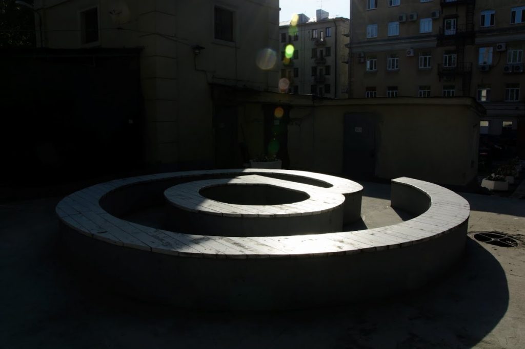 Выходя из здания Хитровки во внутренний дворик, который ведет к зданию Малого Трехсвята, вы сразу увидите Медиадвор. Это специальный проект 5 Московской биеннале современного искусства, который проходил во дворе НИУ ВШЭ в 2014 году. Над реставрацией старого неухоженного двора работали современные художники вместе со студентами Вышки. В итоге было создано комфортное пространство для журналистов и философов (на следующий учебный год медиадвором наслаждались рекламщики — прим. ред.).