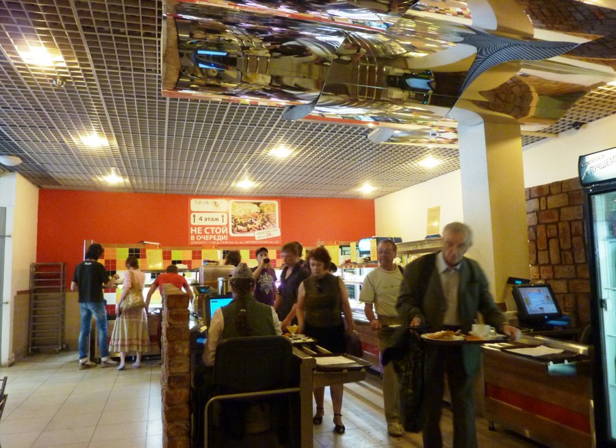 Это место можно в целом определить как «недорого, стильно и вкусно». По формату обслуживанию оно немного напоминает столовую. Заходишь, берешь поднос и выбираешь все, что тебе хочется. Но, в отличии от столовой, тут приятный ненавязчивый дизайн, так что хочется посидеть здесь подольше. Теперь что касается меню и цен. Меню разнообразное: начиная с легких супов и борща, спагетти карбонара и мясом, заканчивая пирожками и тортиками. В баре можно приобрести свежевыжатый сок, кофе, десерты. Благодаря открытой кухне, можно лично наблюдать за приготовлением разных блюд, например воков. В обеденный период вас порадует приятная цена ланча 186 р., но есть опасность долго простоять в очереди, состоящей из таких же умных людей, как вы