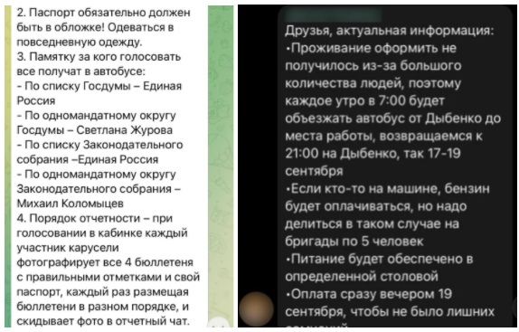 В других городах России на студентов также оказывали давление. В университетах им предлагали участвовать в фальсификации выборов. Издание The Village опубликовало новость о том, что в Петербурге некто Максим Комаров, предположительно глава студсовета БГТУ «Военмех», пытался организовать «карусель» (Один из способов фальсификаций на выборах, который заключается в том, что одни и те же люди посещают разные избирательные участки и голосуют за «нужного» кандидата. Подпадает под статью 142.2 Уголовного кодекса — прим. The Vyshka). Исходя из содержания скриншотов и диктофонных записей, полученных The Village, студенты «Военмеха» должны были сфальсифицировать выборы в Законодательное собрание Ленобласти и Государственную Думу в пользу кандидатов от «Единой России» Светланы Журовой и Михаила Коломыцева в городе Шлиссельбург. Для желающих принять участие в «карусели» были организованы лекции, студентам обещали оплатить питание, организовать развозку и заплатить за незаконное голосование сразу на нескольких участках.