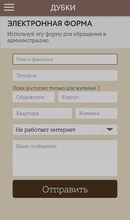 Никита: Плюс ко всему, пользователю теперь будет гораздо проще связываться со студ.советом общежития через электронную форму. То есть теперь не нужно приходить к дежурному в случае поломки чего-либо и оставлять заявку — все это можно сделать через приложение. Что касается жителей Одинцово, то мы с удовольствием сделаем нечто подобное для них, в случае если приложение будет пользоваться спросом.