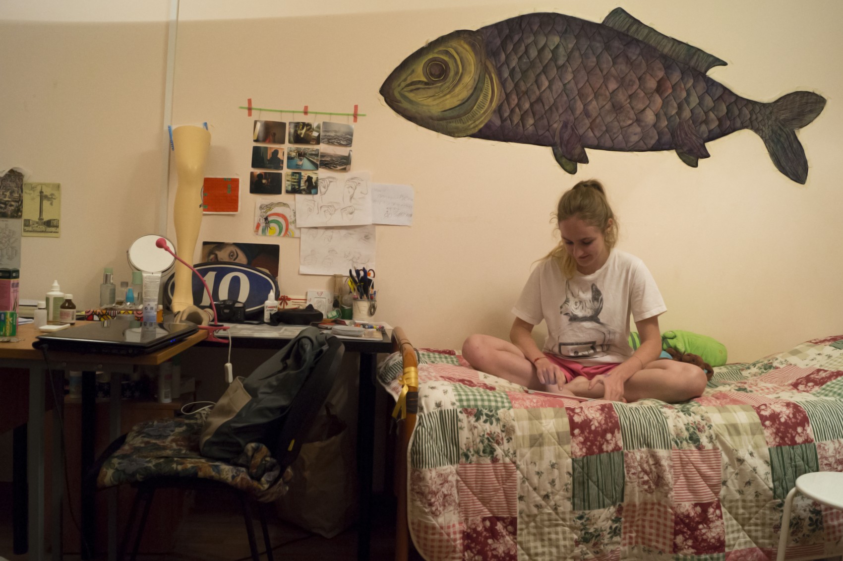 Вышкинские общежития, по крайней мере в Одинцово и Дубках, сильно выигрывают по сравнению с общагами других вузов. Общежитие квартирного типа, новые здания, довольно чисто, кухня, ванная и туалет находятся с вами в квартире, а не на этаже. Ваши родители могут отпускать вас жить в Москву со спокойным сердцем. Но это не отменяет того, что семья далеко, ты теперь живешь один, да еще и в незнакомой комнате с незнакомыми вам людьми. Пора знакомиться с соседями (если ты еще это не сделал) и обживать свою комнату. Ведь в ней тебе, возможно, предстоит прожить ближайшие 4 года, а то и все 6. Наш фотограф стучался во все двери и заглядывал в тот самый «собственный уголок», который каждый из нас обустраивает для того, чтобы называть своим домом.