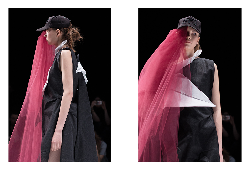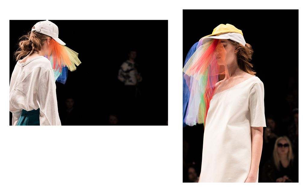 Кепка и фата – ключевые элементы коллекции. Мы не предлагаем людям повторять за нами, пришивать фату к кепке и так ходить по улицам. Не надо воспринимать вещи буквально, коллекция – лишь наша рефлексия на внешний мир и происходящие в нем события. Нашей целью было создание образа современной молодой девушки, героини нашей коллекции, а его уже каждый может интерпретировать по-своему.