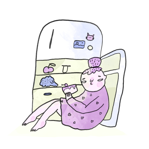 Ваш ужин начинается в 6 вечера с яблочка и апельсина и заканчивается завтраком маминым борщом в 5 утра. Вы умеете есть даже в полусне, если на тумбочке лежит что-то съедобное. Всегда готовы пойти в круглосуточный магазин за чипсами и закупиться едой на несколько ночей вперед. Грязная посуда не копится в раковине, потому что она у вас комнате. Компьютер надежно спрятан среди фантиков, кружек и остатков еды из холодильника.